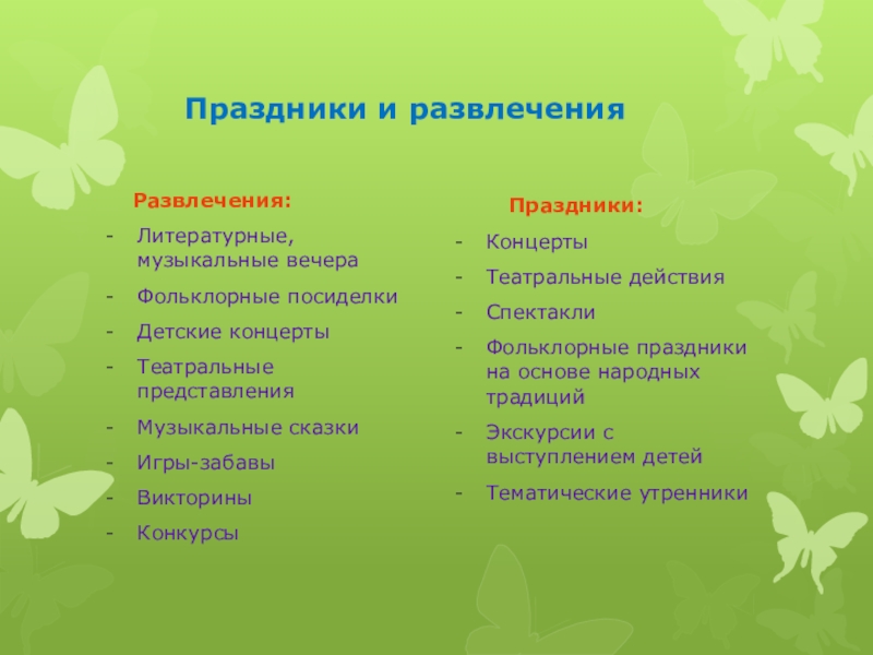 Слайд 15 Праздники и развлечения