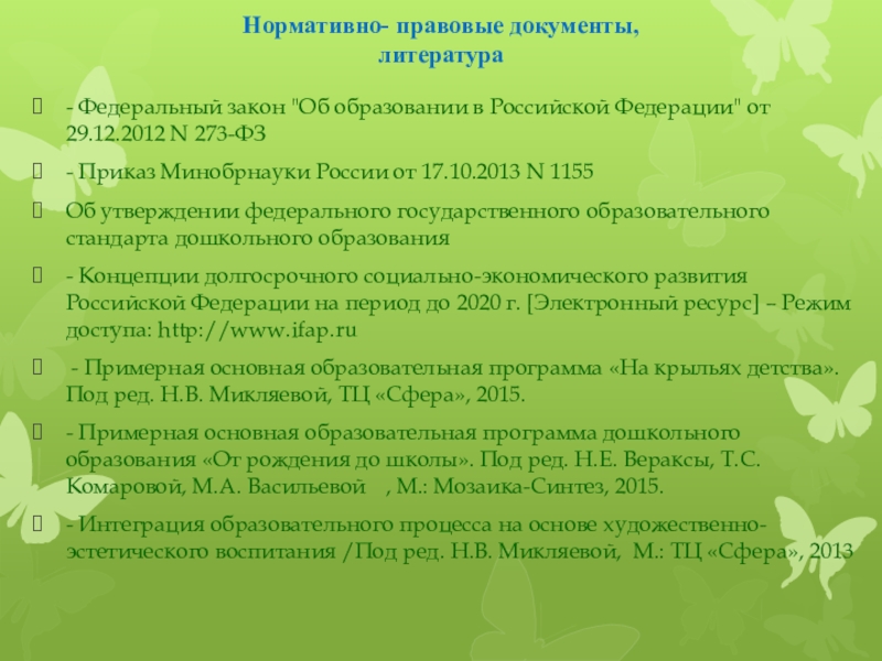 - Федеральный закон "Об образовании в Российской Федерации"