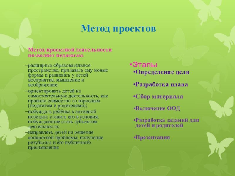 Метод проектной деятельности позволяет педагогам: