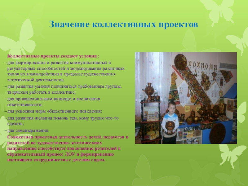 Слайд 35Значение коллективных проектов