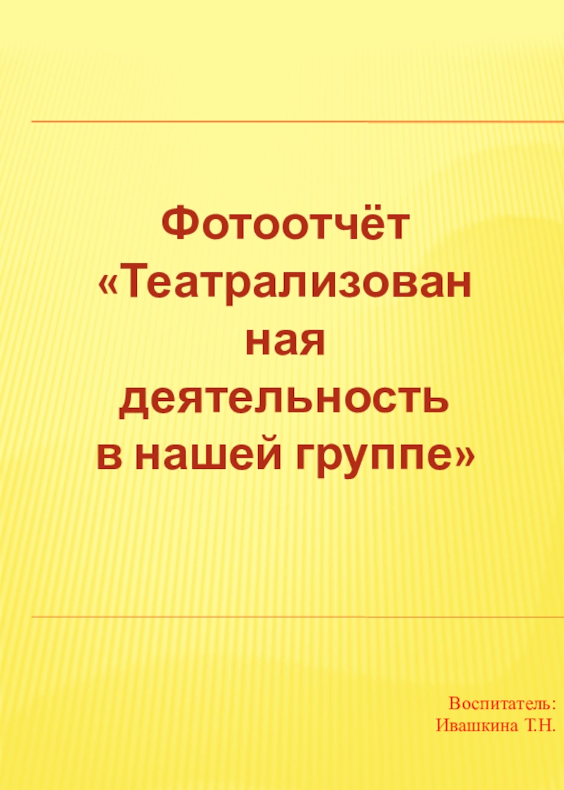 Фотоотчёт«Театрализованная деятельность в нашей группе»Воспитатель:Ивашкина Т.Н.