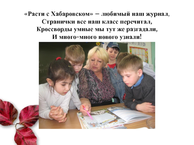 «Расти с Хабаровском» – любимый наш журнал, Странички все наш класс перечитал, Кроссворды умные мы тут же