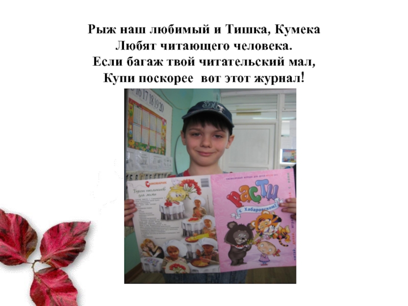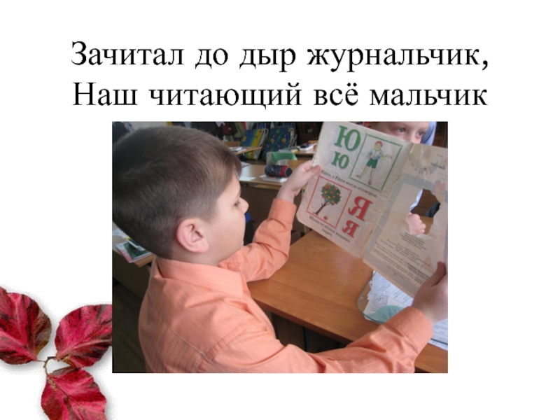 Слайд 4Зачитал до дыр журнальчик, Наш читающий всё мальчик