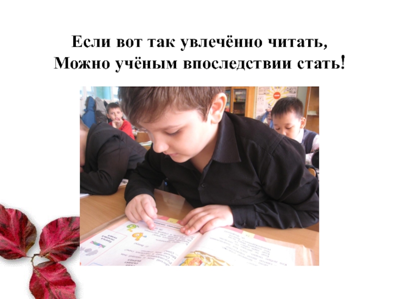 Слайд 15Если вот так увлечённо читать, Можно учёным впоследствии стать!