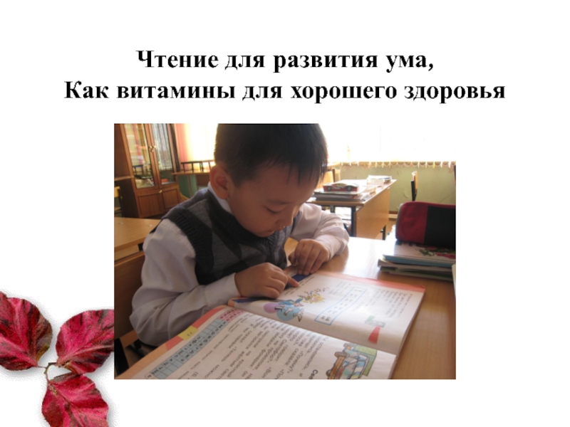 Слайд 6Чтение для развития ума, Как витамины для хорошего здоровья