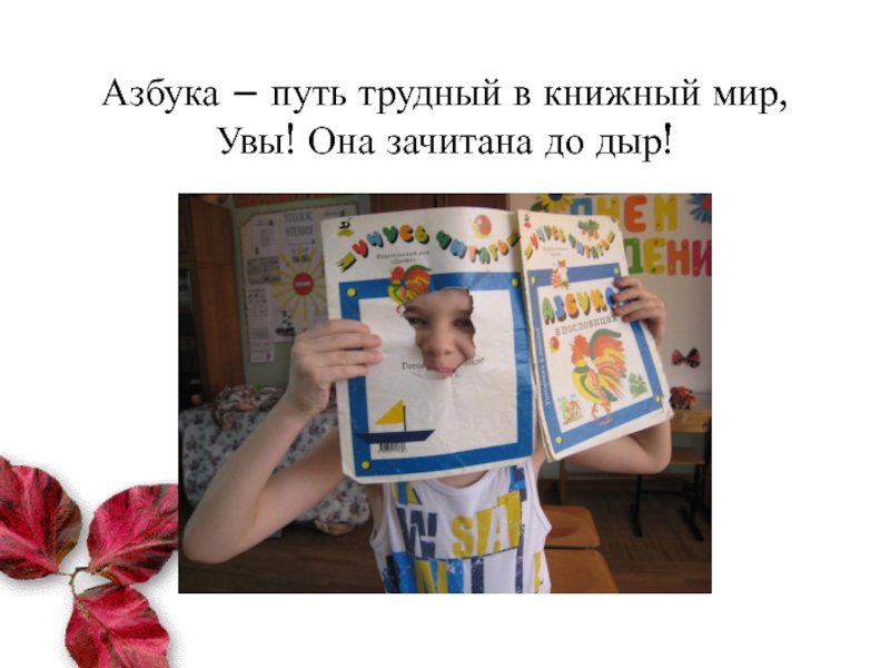 Слайд 8Азбука – путь трудный в книжный мир, Увы! Она зачитана до дыр!