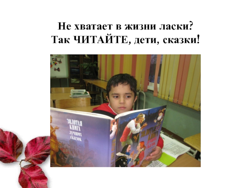 Слайд 9Не хватает в жизни ласки? Так ЧИТАЙТЕ, дети, сказки!
