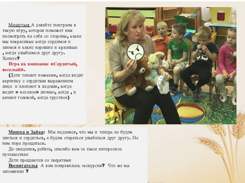 Мишка и Зайка: Мы надеемся, что мы и теперь не будем злиться и сердиться, а будем стараться улыбаться друг другу. Но нам пора прощаться.