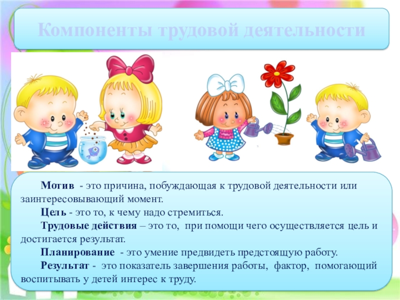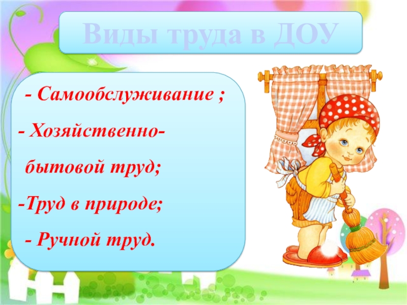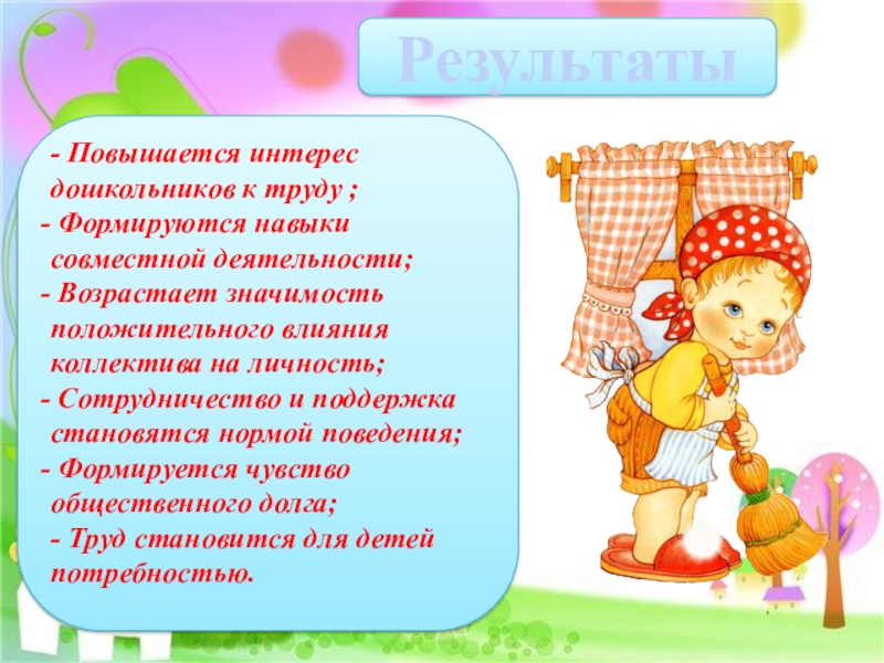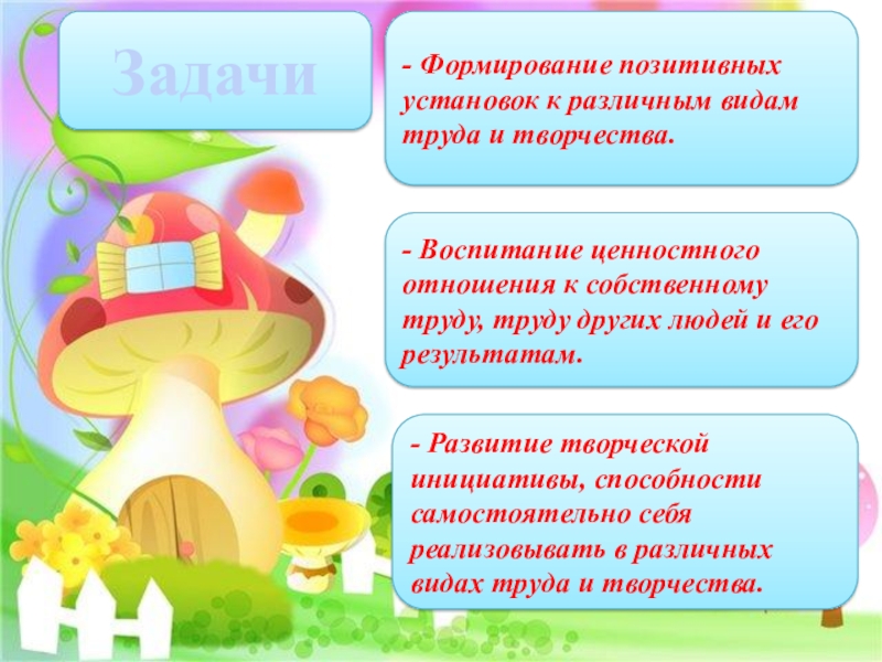 - Развитие творческой инициативы, способности самостоятельно себя реализовывать в различных видах труда и творчества.