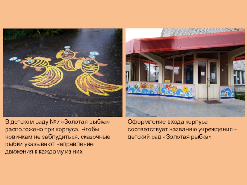 Оформление входа корпуса соответствует названию учреждения – детский сад «Золотая рыбка»