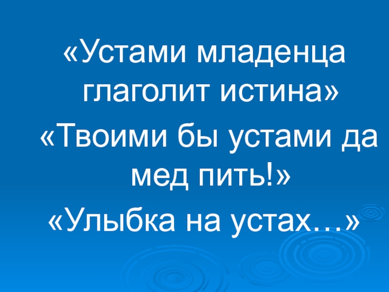 «Устами младенца глаголит истина»«Твоими бы устами да мед пить!»«Улыбка на устах…»