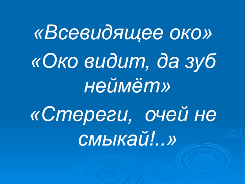 «Всевидящее око»«Око видит, да зуб неймёт»«Стереги, очей не смыкай!..»