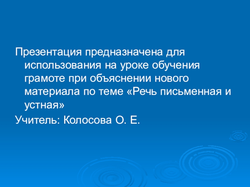 Презентация предназначена для использования на уроке обучения грамоте при объяснении нового материала по теме «Речь письменная и