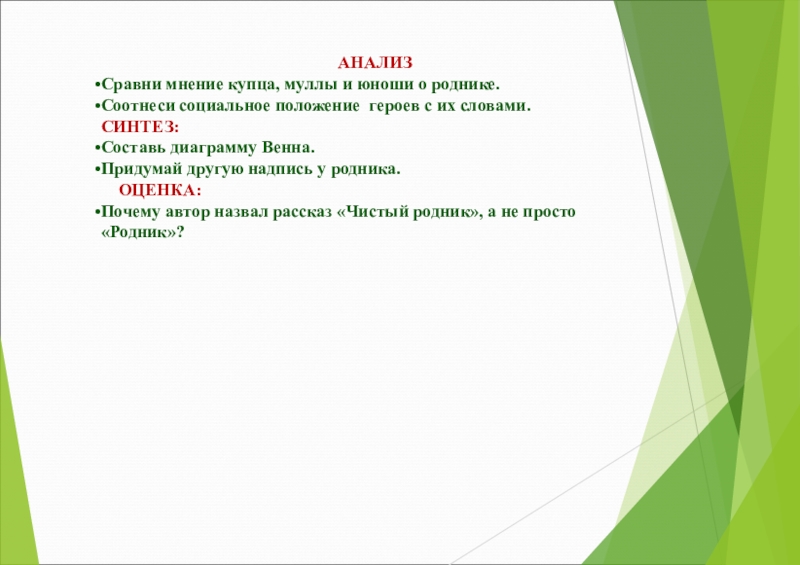 Что думал купец (бедный мулла, красивый юноша) о надписи у родника?