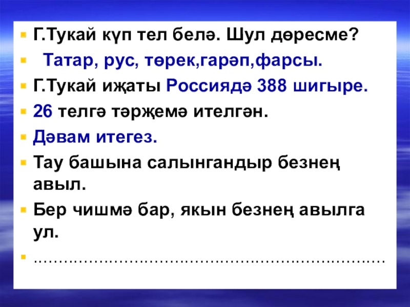 Слайд 20Г.Тукай күп тел белә. Шул дөресме?