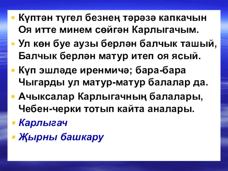 Оя итте минем сөйгән Карлыгачым.