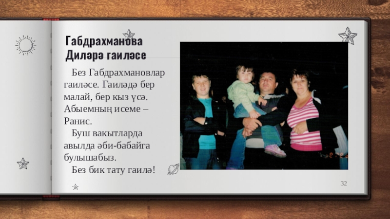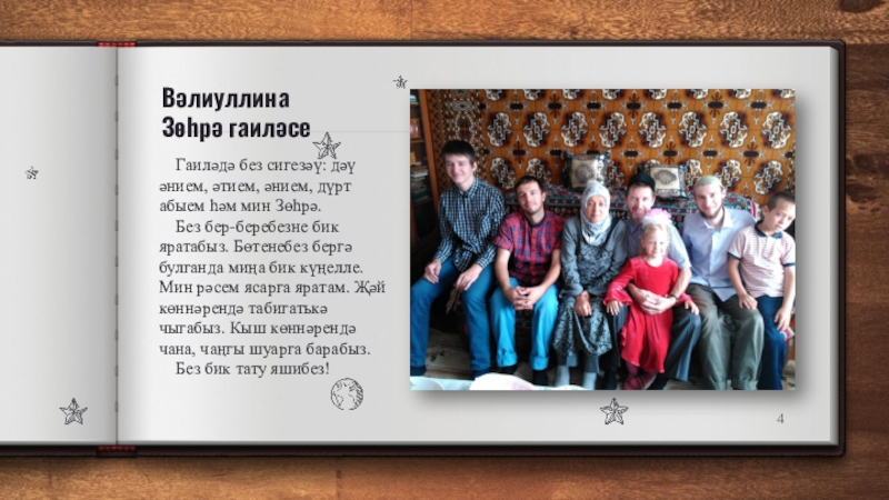 Безнең гаилә зур. Минем энем, сеңлем, әтием, әнием, әбием