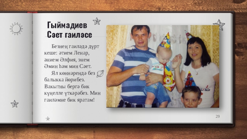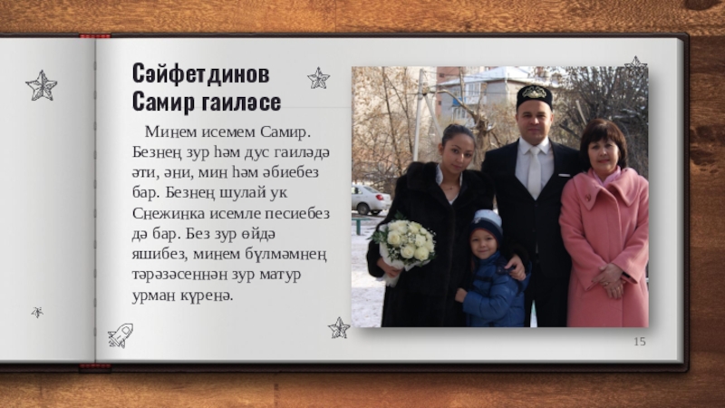 Минем исемем Самир. Безнең зур һәм дус гаиләдә әти,