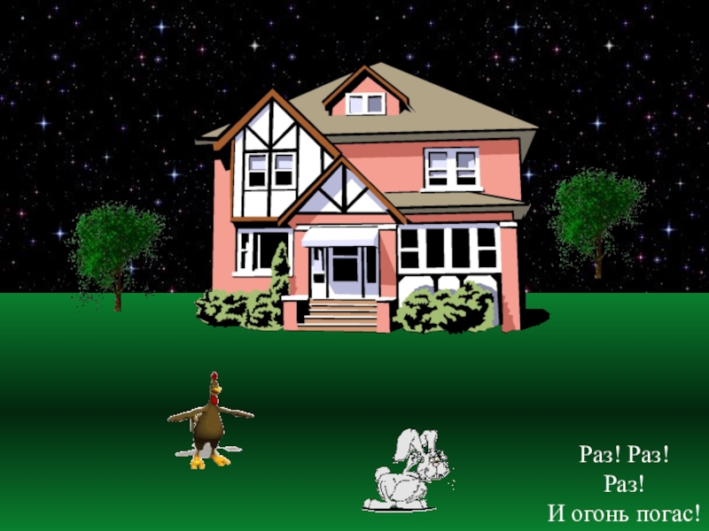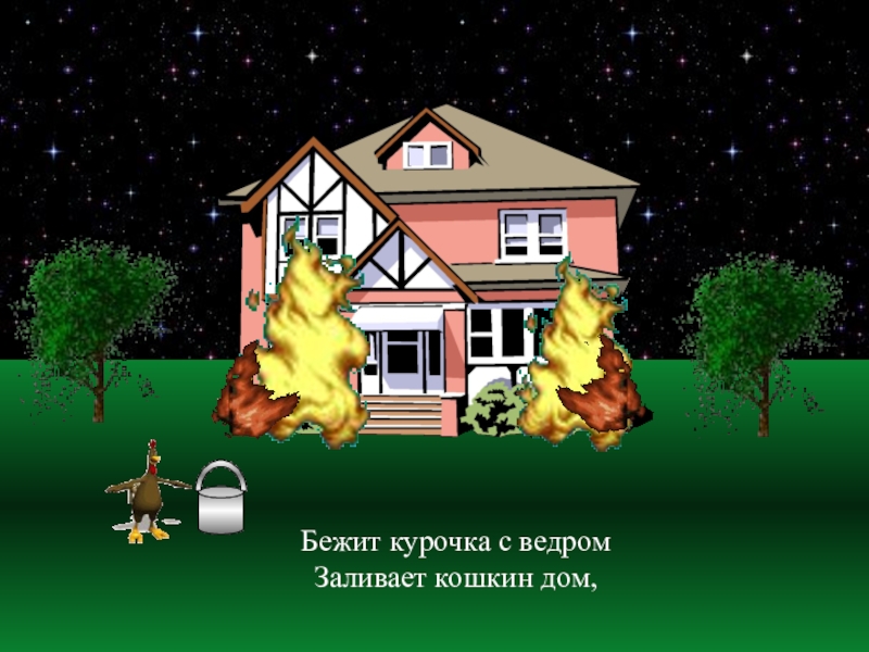 Бежит курочка с ведромЗаливает кошкин дом,