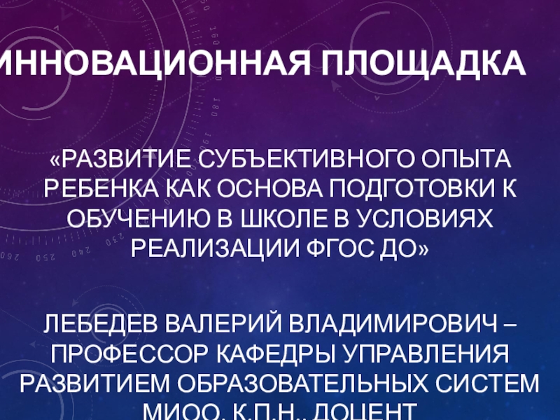 Лебедев Валерий Владимирович – профессор кафедры управления развитием образовательных систем МИОО, к.п.н., доцент