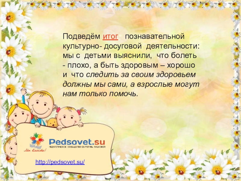 Это сайт презентаций, где можно хранить и обмениваться своими презентациями, докладами, проектами, шаблонами в формате PowerPoint с другими пользователями. Мы помогаем школьникам, студентам, учителям, преподавателям хранить и обмениваться учебными материалами.