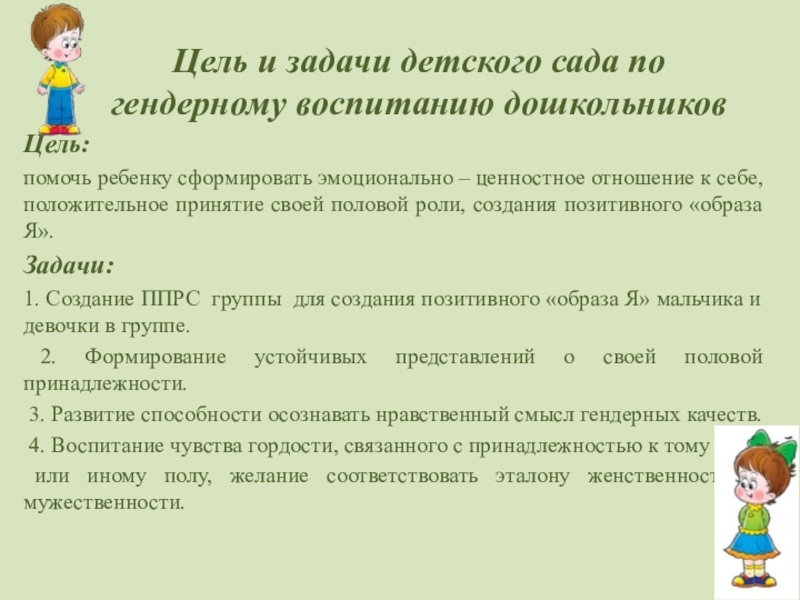 Осознание своего «Я», своей роли в обществе дошкольниками, гендерная компетентность взрослых