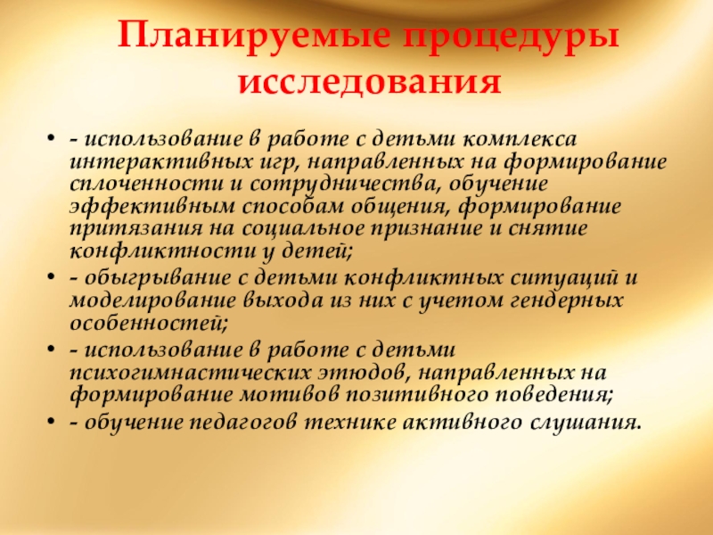 Слайд 7Планируемые процедуры исследования