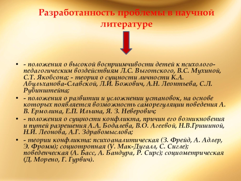 к психолого-педагогическим воздействиям Л.С. Выготского, B.C. Мухиной, С.Т. Якобсона; - теория о сущности личности К.А. Абульханова-Славской, Л.И. Божович, А.Н. Леонтьева, С.Л. Рубинштейна;