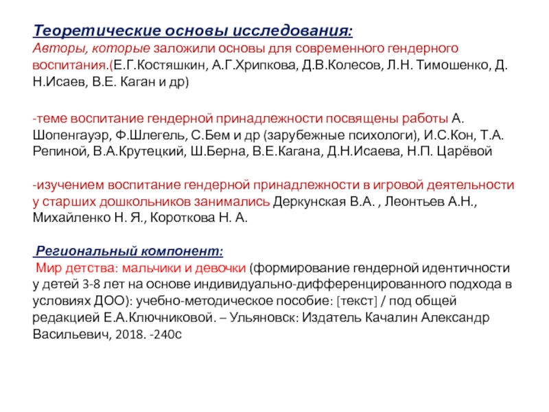 «Гендерный подход в образовании детей