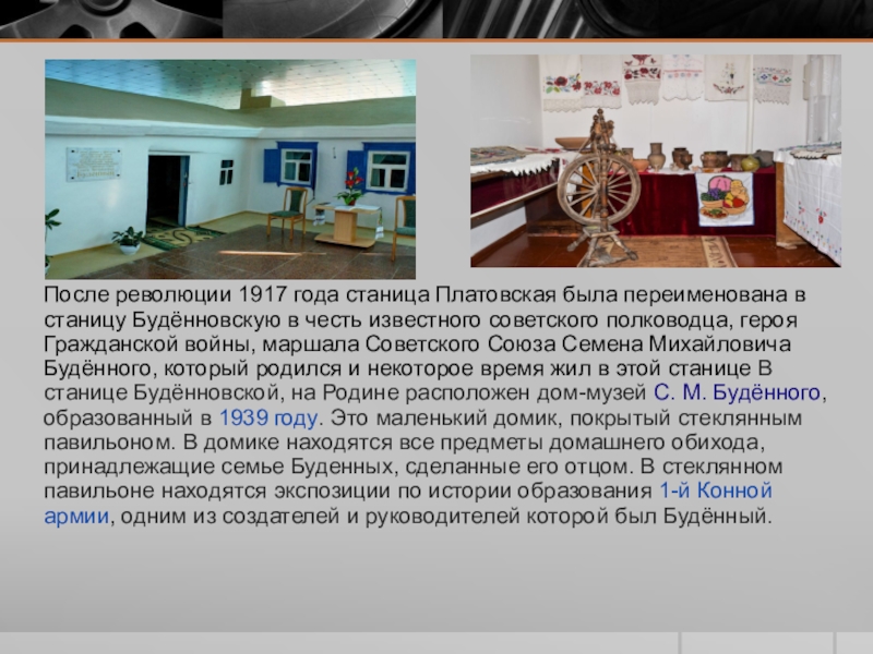 Слайд 13После революции 1917 года станица Платовская была переименована в станицу Будённовскую