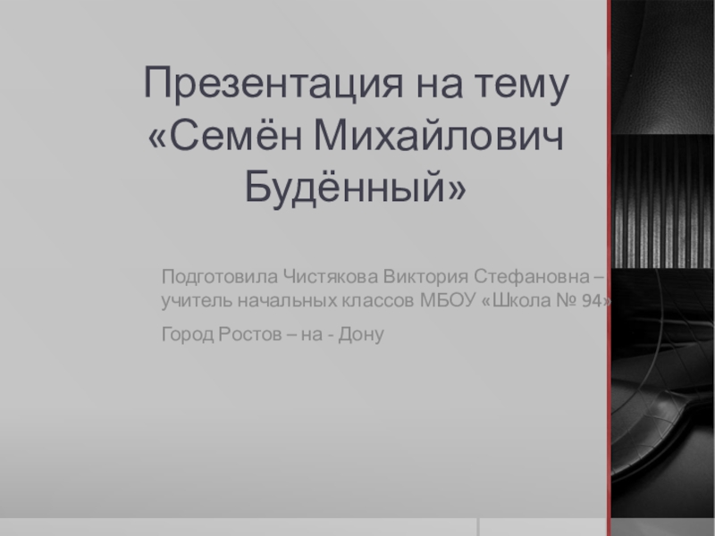 Слайд 1Презентация на тему «Семён Михайлович Будённый»