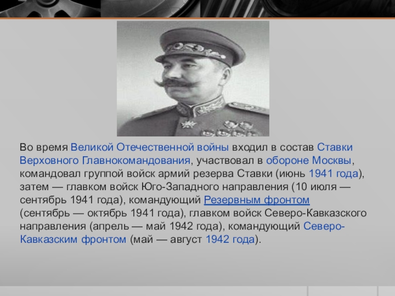 Слайд 9Во время Великой Отечественной войны входил в состав Ставки Верховного Главнокомандования,
