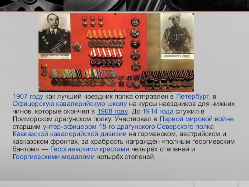 Слайд 51907 году как лучший наездник полка отправлен в Петербург, в Офицерскую