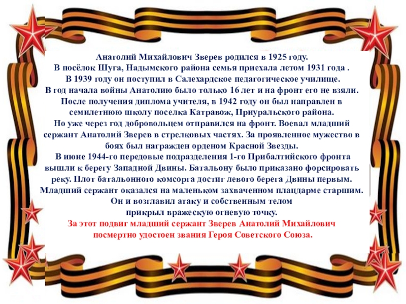 За этот подвиг младший сержант Зверев Анатолий Михайлович