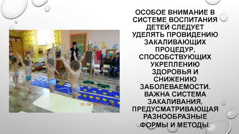 Слайд 2Особое внимание в системе воспитания детей следует уделять провидению закаливающих процедур,