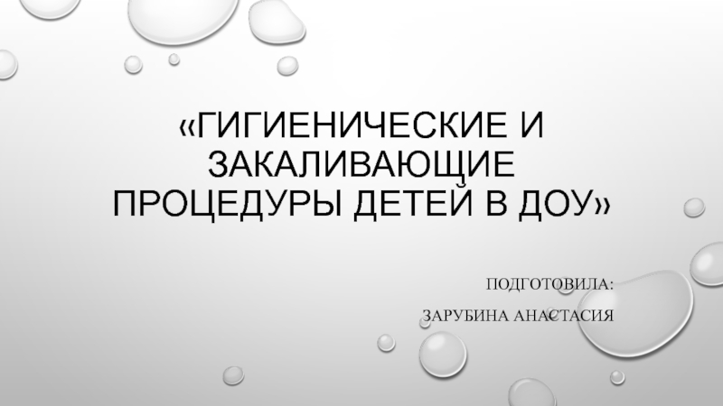 «Гигиенические и закаливающие процедуры детей в доу»Подготовила:Зарубина Анастасия