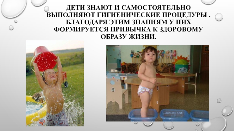 Слайд 7Дети знают и самостоятельно выполняют гигиенические процедуры . Благодаря этим знаниям