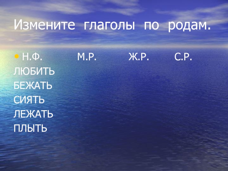 Измените глаголы по родам.Н.Ф.      М.Р.     Ж.Р.
