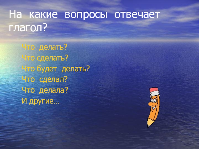 На какие вопросы отвечает глагол?Что делать?Что сделать?Что будет делать?Что сделал?Что делала?И другие…