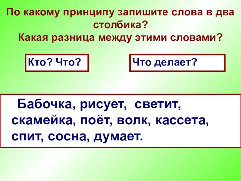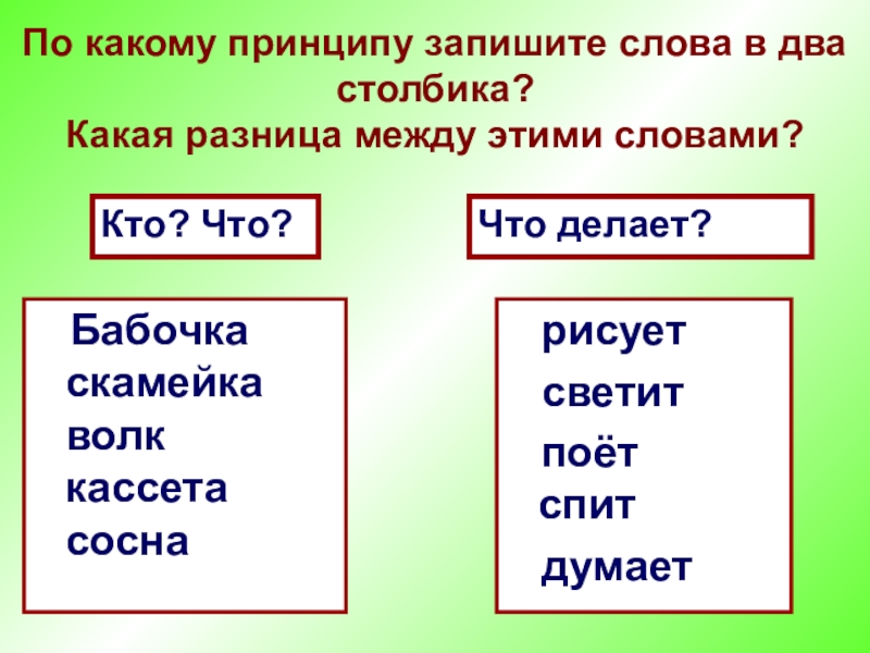 По какому принципу запишите слова в два столбика?