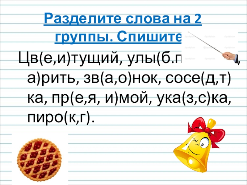 Слайд 3Разделите слова на 2 группы. Спишите .