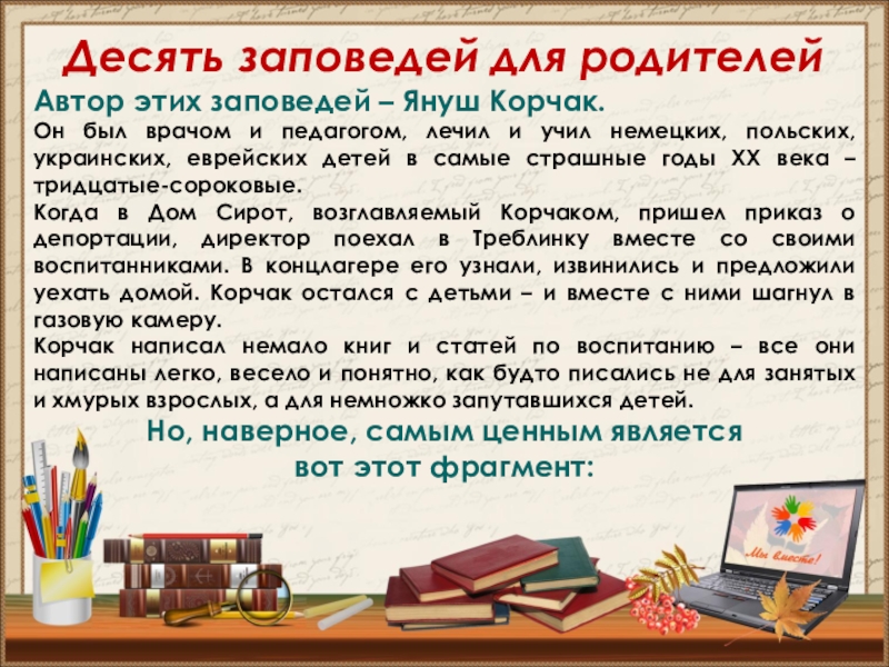 Автор этих заповедей – Януш Корчак.
