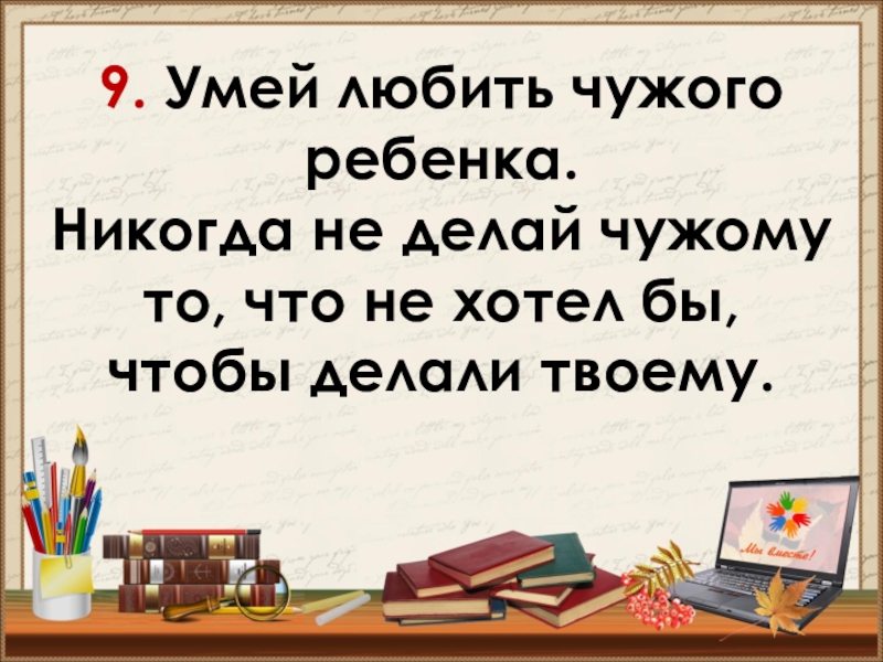 Слайд 209. Умей любить чужого ребенка.