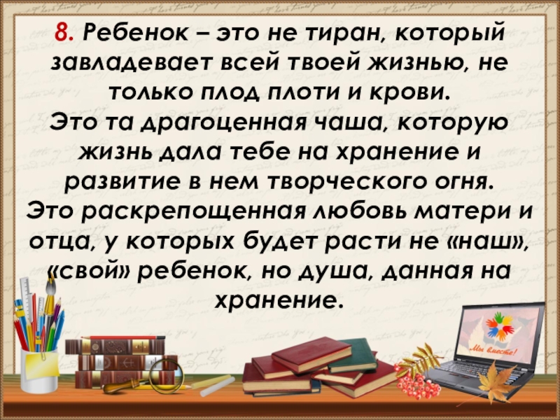Слайд 198. Ребенок – это не тиран, который завладевает всей твоей жизнью,