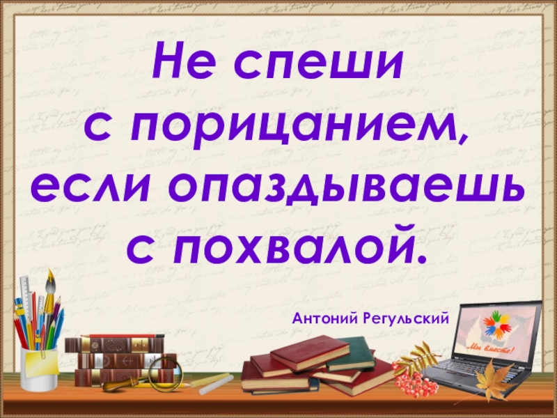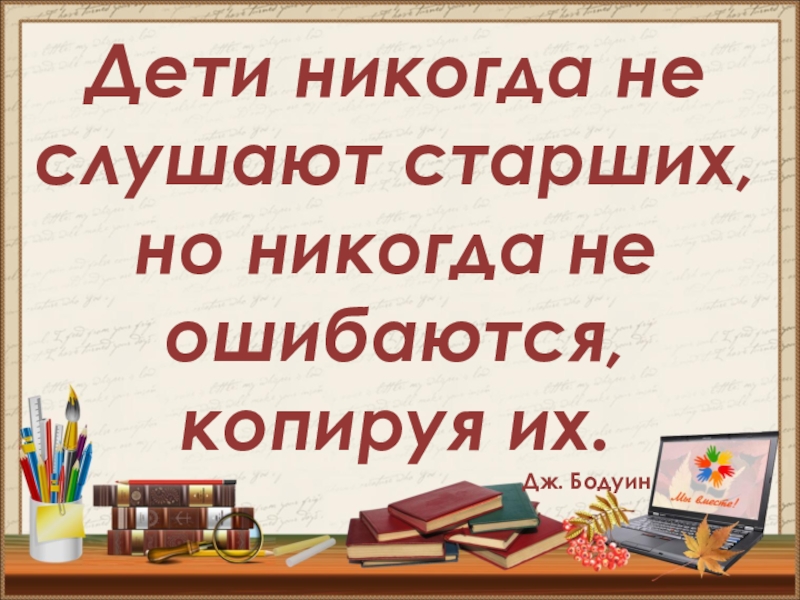 Слайд 3Дети никогда не слушают старших, но никогда не ошибаются, копируя их.
