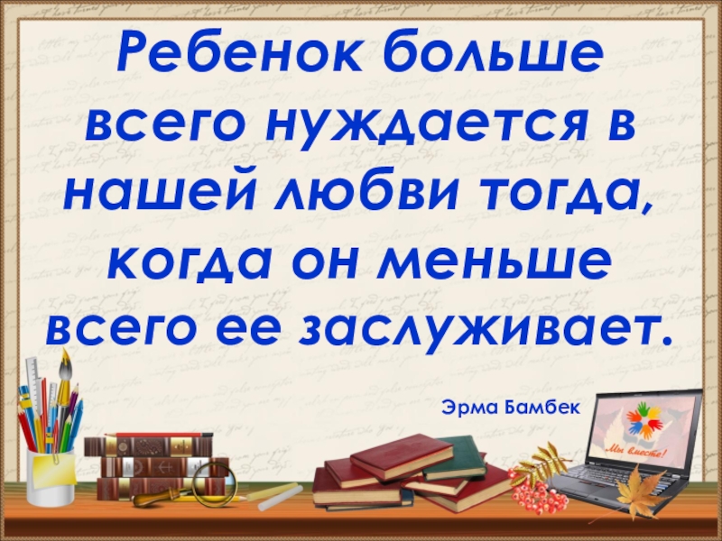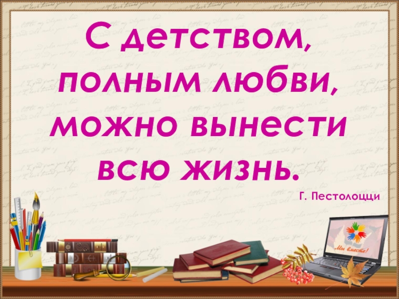 Слайд 5С детством, полным любви, можно вынести всю жизнь.