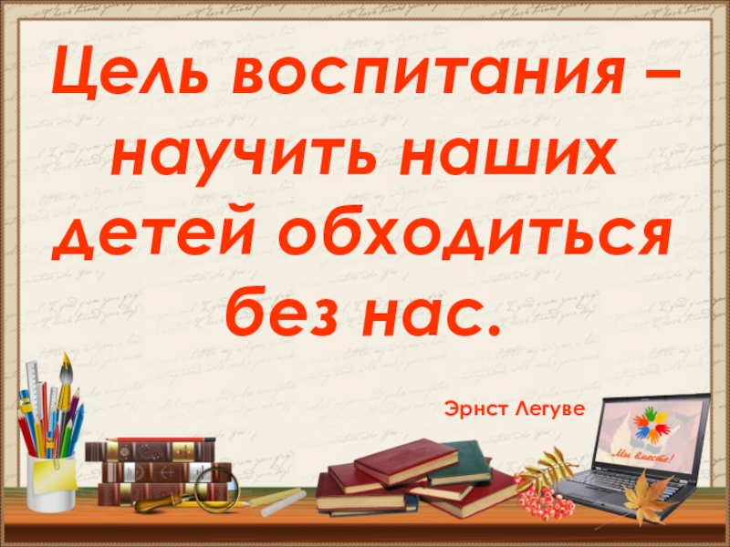 Слайд 8Цель воспитания – научить наших детей обходиться без нас.