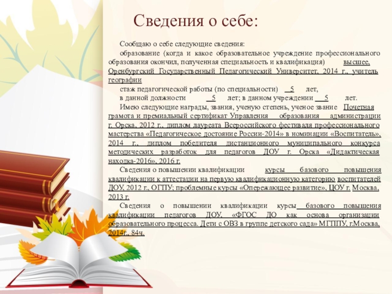 Слайд 2Сведения о себе: