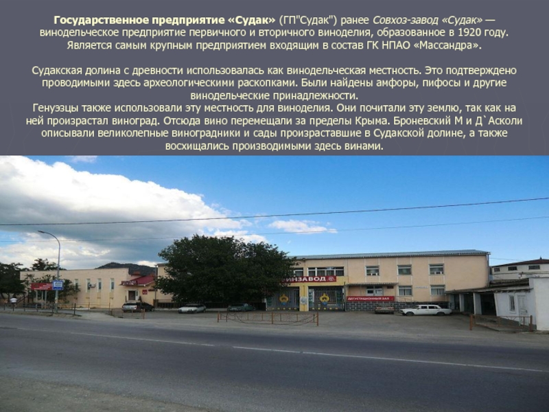 В 1920 году образовано винодельческое предприятие ГП «Судак».