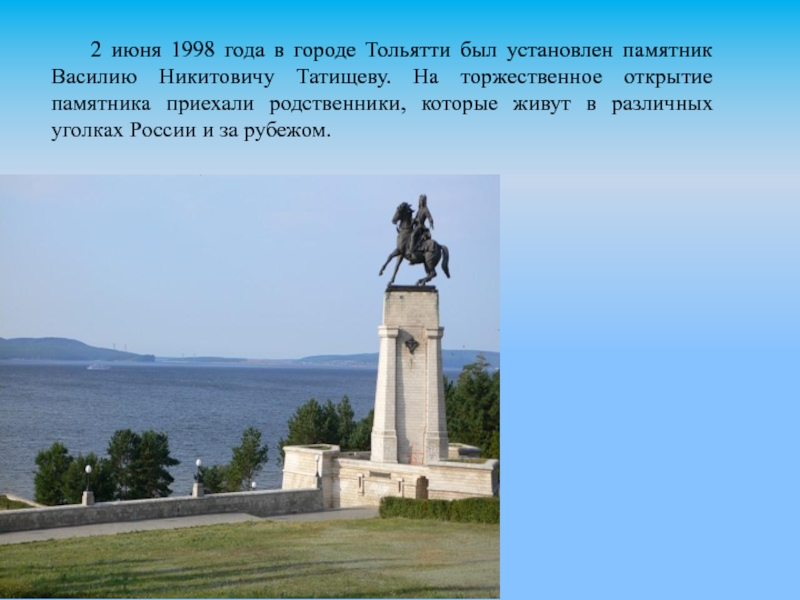 Никитовичу Татищеву. На торжественное открытие памятника приехали родственники, которые живут в различных уголках России и за рубежом.